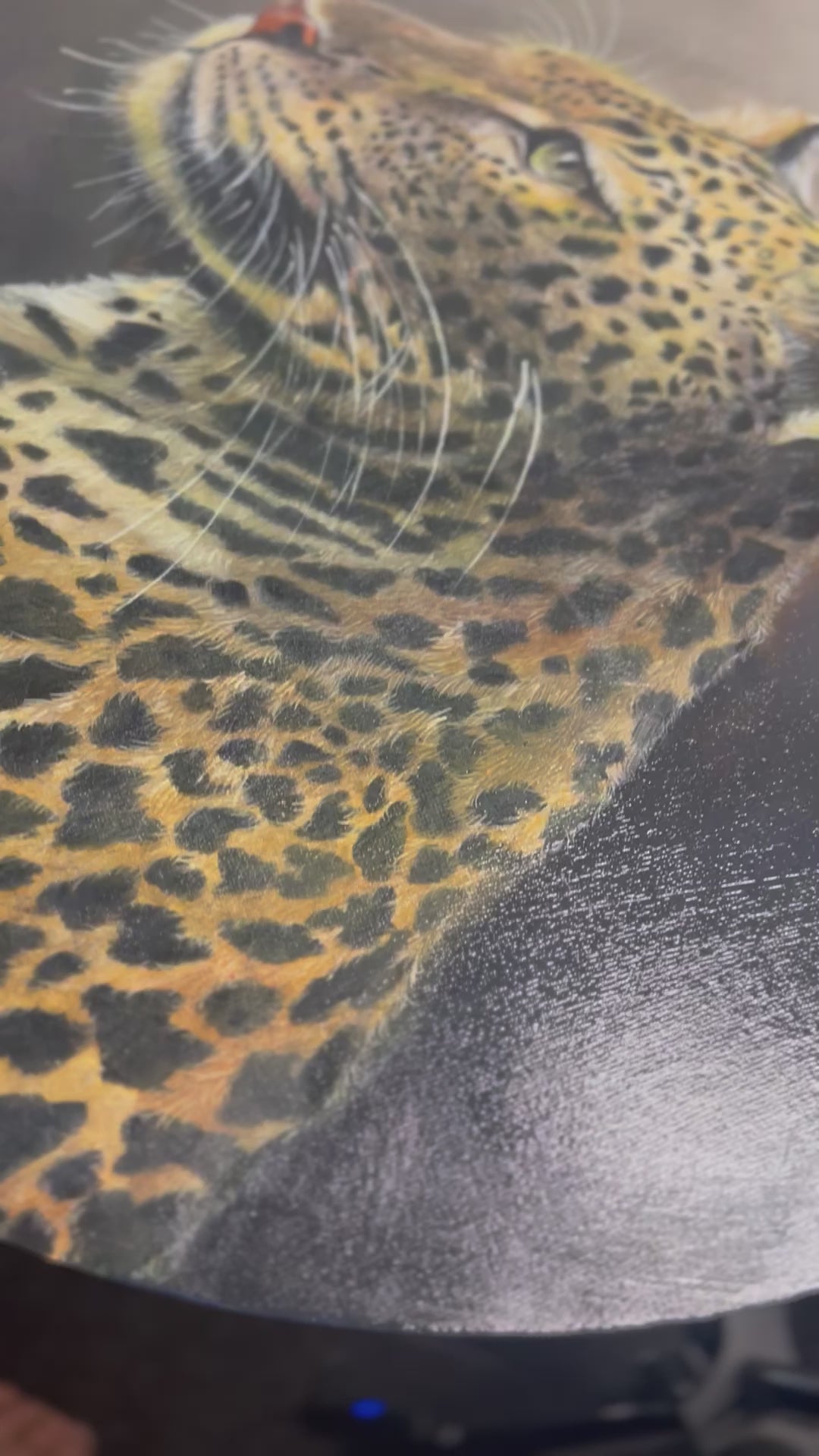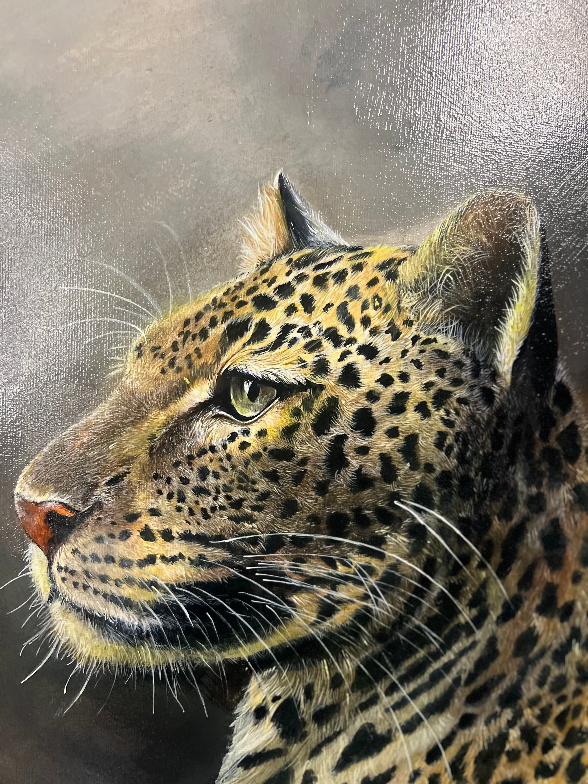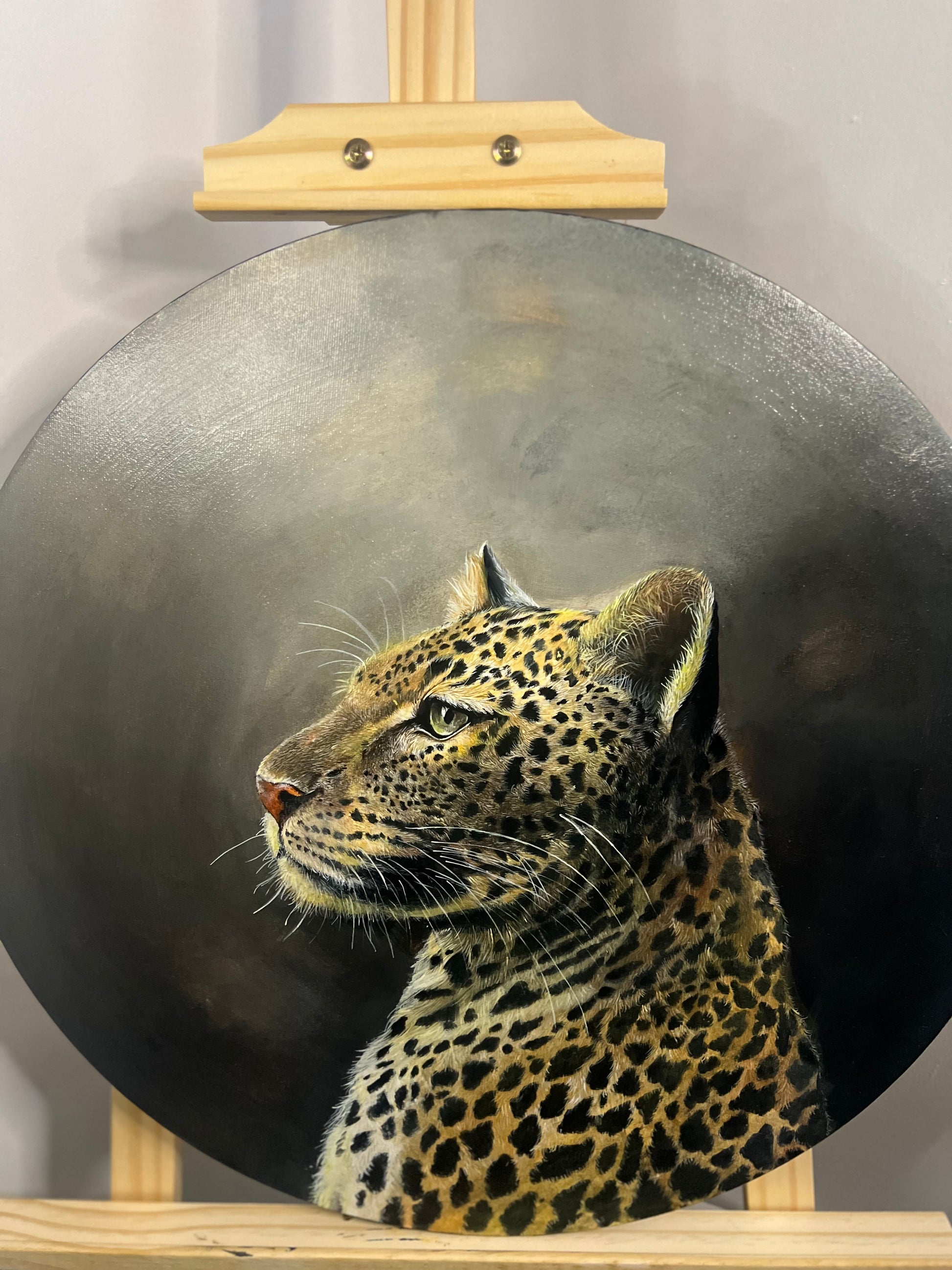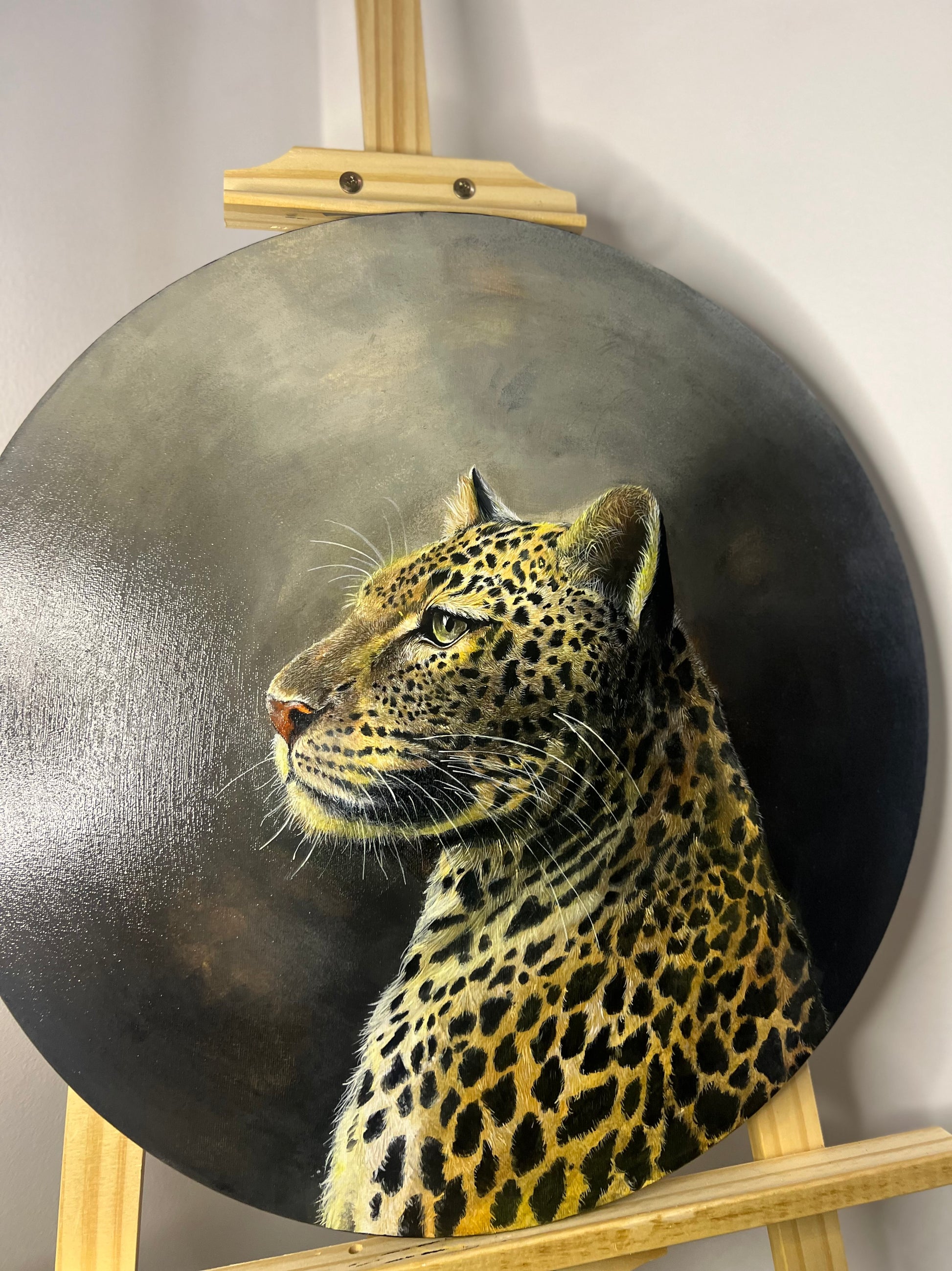 Unleash the wild elegance of nature with this 50cm hand-painted leopard artwork. Crafted with precision using professional acrylic paints and sealed with a protective varnish finish, this piece captures the raw power and beauty of the leopard in stunning realism.