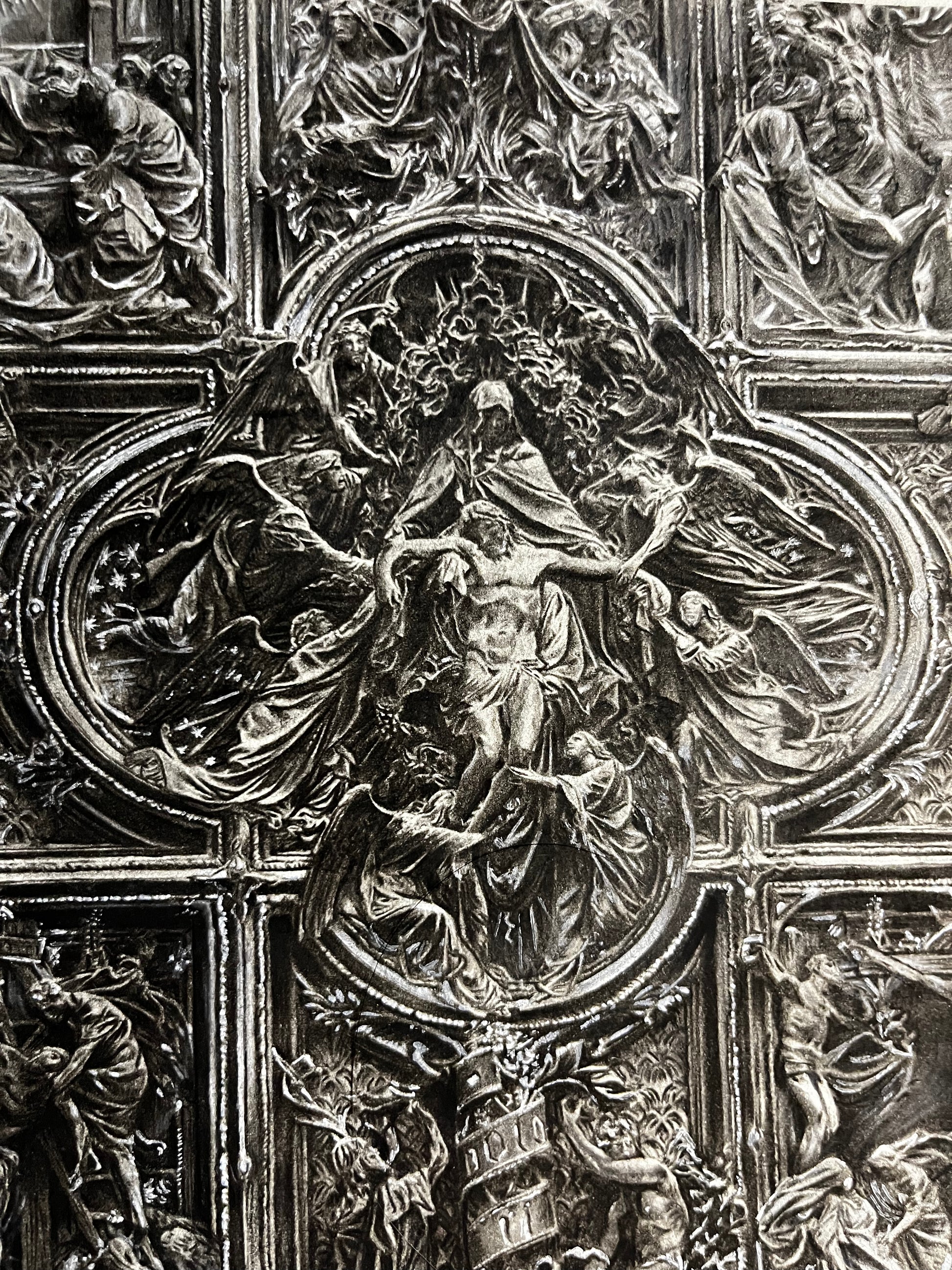 A one-of-a-kind hand-drawn artwork inspired by the intricate details of the Duomo di Milano’s historic doors. Created with charcoal and graphite on premium paper, this large-format drawing captures architectural elegance in timeless monochrome.